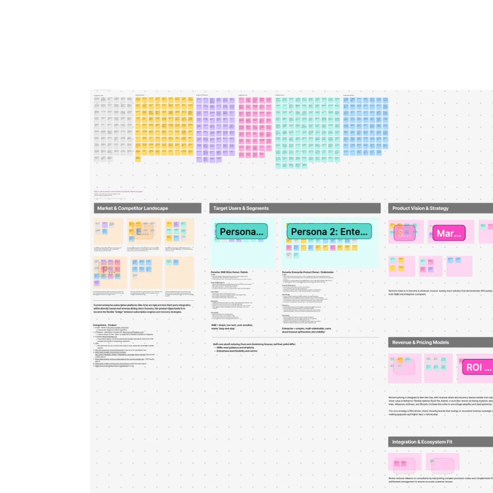 Led the 0→1 design of churn and payment recovery for a B2B SaaS product, from stakeholder synthesis and information architecture to high-fidelity workflows.